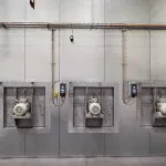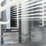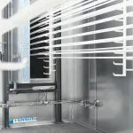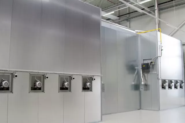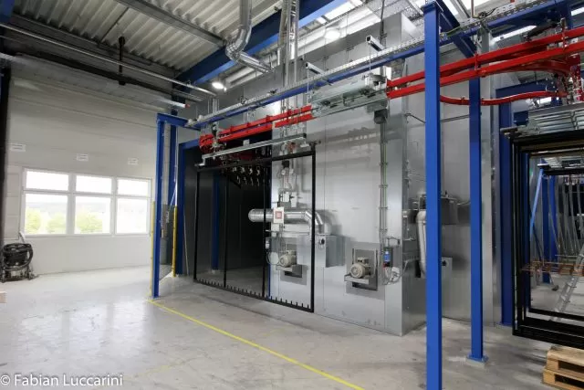 Haftwassertrockner:Im Haftwassertrockner wird das auf dem Werkstück haftende Wasser energieeffizient entfernt. Zum Einsatz kommen speziell entwickelte Luftdüsen, die eine gezielte, turbulente Luftströmung erzeugen. Dies erlaubt ein effektives Trocknen auch bei reduzierter Temperatur – ideal zur Energieeinsparung und für empfindliche Materialien.Durchlaufeinbrennofen:Der Durchlaufofen ist die einfachste Form eines Einbrennofens. Die Werkstücke werden über ein Fördersystem kontinuierlich durch den Ofen geführt. Die Einbrennzeit wird über Fördergeschwindigkeit und Ofenlänge definiert. Diese Systeme werden ohne Türen, aber mit Schleusen ausgeführt. Trotz hohem Energieverbrauch bietet diese Variante eine niedrige Investitionsschwelle.A-Schleusen Einbrennofen:Der A-Ofen ist die energieeffizienteste Lösung unter den Einbrennöfen. Hierbei sind weder Türen noch klassische Schleusen erforderlich. Aufgrund der vertikalen Bauweise ist ausreichend Hallenhöhe erforderlich. Der A-Schleusenofen eignet sich besonders für kleinere Bauteile bei gleichzeitig hoher Prozessqualität.Takteinbrennofen:In den meisten Fällen wird ein Takteinbrennofen eingesetzt. Während des Heizvorgangs bleiben die Öffnungen durch automatisch schliessende Türen verschlossen – so wird Wärmeverlust minimiert und Energie eingespart. Die Werkstücke verbleiben in der Kammer, bis die definierte Sollzeit erreicht ist. Bei grösseren Öffnungen können zusätzlich Luftschleusen integriert werden, um Wärmeaustritt weiter zu reduzieren.Angelierzone / Schleusen:Eine Angelierzone kommt bei häufigen Farbwechseln zum Einsatz. Sie wird durch heisse Luft aus dem Ofenlüftungsaggregat temperiert und leitet den Vernetzungsvorgang ein, indem der Pulverlack bei niedriger Temperatur angeschmolzen wird. Dies sorgt für exzellente Oberflächenqualität. Gleichzeitig fungiert diese Zone als thermische Schleuse und reduziert Wärmeverluste aus dem Ofenraum.Türsystem:Unsere Ofensysteme sind mit individuell angepassten Türlösungen ausgestattet. Je nach Teiledimension und Platzverhältnissen verbauen wir Flügel- oder Schiebetüren, ein- oder zweiflügelig. Besonders hervorzuheben sind unsere motorisierten Doppelschiebetüren: Sie lassen sich automatisch öffnen und schliessen, verfügen über integrierte Sicherheitstechnik und benötigen keine zusätzlichen Sicherheitsleisten, deren regelmässige Wartung entfallen kann. Technische daten:Übliche Teiledimensionen:Länge: 1m – 12mBreite: 0.2m – 2mHöhe: 1m – 3.5mWeitere Dimensionen können gerne besprochen werden.Heizungsart:ErdgasPropangasÖlElektrischThermoölBrauchwarmwasserHackschnitzelDirekt- und Indirekte BeheizungTemperaturen:Standard 40 – 220°CSpeziallösungen bis 300°CTemperaturgenauigkeit:bis zu +/- 5°CTrocknerisolation:Steinwolle mit einer Dichte 135 kg/m³ undeinem U-Wert von 0.24 W/m²KIsolierstärke der Ofenhülle:Von 40 – 80°C = 60mmVon 80 – 220°C = 150mmLuftmengen:Von 5’000 – 100’000 m³/hSteuerung:Bedarfsgerechte Abluftsteuerung mittels eigenem VentilatorNormen:DIN EN-1539AMS 2750 für die FlugzeugindustrieWeitere Ofenanwendungen:TrocknungstruhenKondensationstrocknerStrahlungsöfen (Gas Katalytisch / IR)Spezialofensysteme